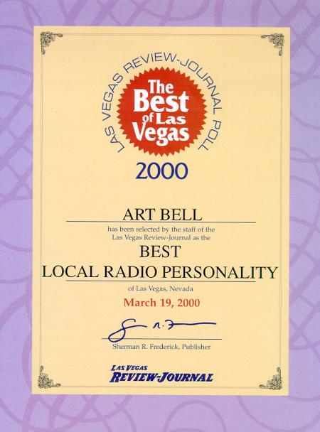 Art receives the "Best Local Radio Personality" award, one of the Las Vegas Review-Journal's "Best of Las Vegas" Awards. (3/21/00)