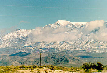 Art is welcoming guests to his city of Pahrump (left), and a view of Mt Charleston from the city (right).