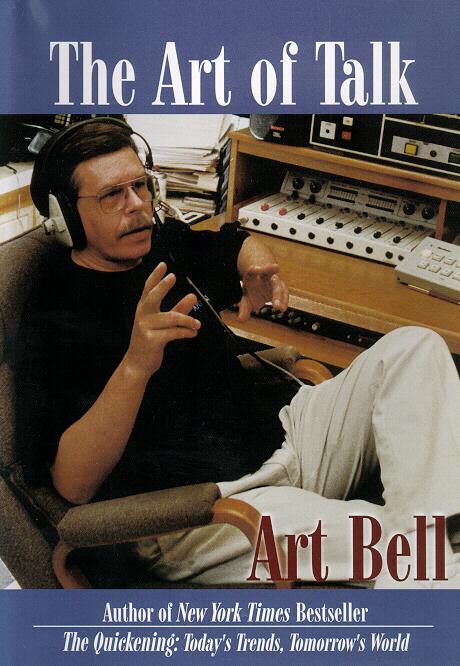 The ART OF TALK Book is an autobiography of Art Bell written by himself (not some ghostwriter). In it he talks about his early life, formative years, start in radio, and his two shows, Coast to Coast AM and Dreamland. It is a 176 page hardcover book with photos, measuring about 8 1/2 X 9 1/2. The cover of the book has Art Bell on it, it is original artwork with a desert scene in the background. Price is $24.95 ($29.95 Canada/Mexico)plus $5.00 shipping and handling for 4th class mail. Delivery is expected in 10 to 14 working days. The ART OF TALK Audio Tape is a 4 1/2 hour abridgment of the book performed by Art Bell. It features music that Art uses on his show and it is three cassettes total in a vinyl album. Price is $23.95 ($26.95 Canada/Mexico) plus $5.00 shipping and handling shipped 1st class mail. Delivery time depends on area of customer. The Art of Talk