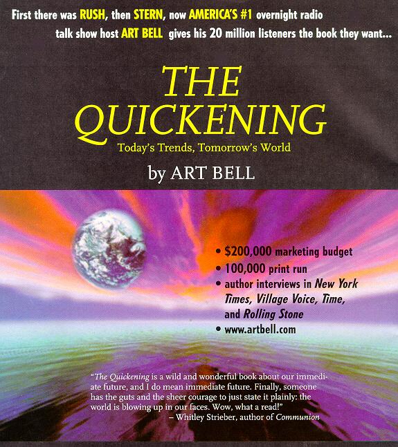 REVIEWS:"Steiger approaches his subject matter dispassionately and lets the reader make up his or her own mind."--Los Angeles Herald Examiner "Steiger is one of those rare students of borderline phenomena able to explore bizarre and improbable events--without lapsing into the guileless credibility of the cultist."--Minneapolis Tribune "Bell asks that we embrace all possibilities. He is a preacher of sorts--a purveyor of hope and possibility in the great beyond. He offers defense against the sapping mystery of night."--The Washington Post "Art Bell is the star of late-night AM radio."--The New York Times The Source is $21.95 plus $5.00 shipping/handling, available direct from the 800-864-7991. Or Order the "The Source" From Amazon San Diego Book SigningArt was signing books at the BRAND NEW Barnes & Noble bookstore in Encinitas CA on Saturday October 25th. Here are a few photos of the event. And look who showed up later at the book signing, top left is David John Oates, right is Richard Hoagland, below Art and Ramona. The Quickening