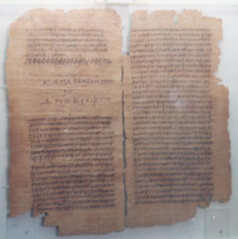 Caption: Fragment of New Testament Gospel of Thomas, deleted in 4th Century