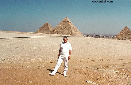 Ramona and Art pictured fairly close to the Pyramids, not normally open to the public.
