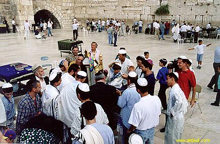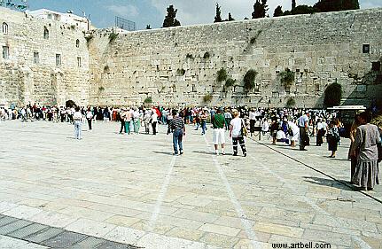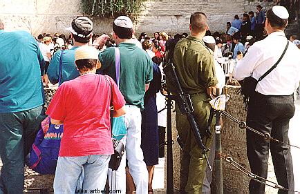 The wailing wall, with armed guards.
