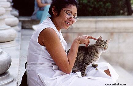 Next stop Greece, where Ramona relaxes with a friendly feline.