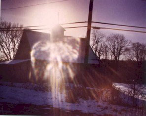 Judy Kelley (ARTSHOPRO1@aol.com) also sends us: This photo I took in Hardy, Arkansas, Thanksgiving weekend, about 1976, of an old barn. Look in the center for a face, also have seen other angels and faces in there too. ![]()
