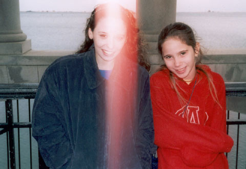 Delaney sends us: The first photo was taken with a canon elph camera. It was taken in December 1999 at the Plymouth Rock monument in Plymouth Harbor, M.A. The day was overcast as you can see from the sky and the water (no reflection). None of the other photos from the same roll came out with any problems. I took the photo to a developer who was unable to explain the red mist. ![]()
