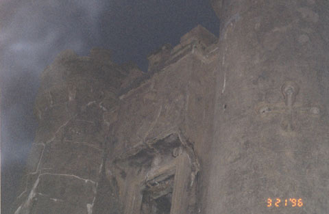 Delaney finally sends us: The third photo was taken at Clifden Castle in County Galway, Ireland. In the upper right hand corner you can see a misty object. There was no mist at the time the picture was taken. Nor was there any other mist like object on any of the other pictures taken with the same roll. The picture is dark because it was dusk. ![]()