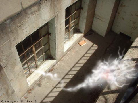 NOTE: Remember folks, we don't insist any of these are real, but are posted for your enjoyment and consideration. We post what the submitter claims. We leave it up to you to decide what is real and what is phoney. Morgan L. Miller III (morganmillerthe3rd@earthlink.net) says: I was walking around this creepy old church and decided to take a picture of this small recess in the building. As I took the photo I could feel the hairs on the back of my neck stand up, but just attributed this to the uncanny nature of the architecture and went about my business. To my surprise when I got home and looked at the pictures there was this mysterious form floating from the window! This is strangness that is unexplainable by the natural sciences. Seeing as how some people might doubt the lagitamacy, I had the photo verified by the film processors where I had the roll developed (Thrifty Drug store's discount1/2 hour developing). The technition confirmed that it was untampered with adding undisputable credibility to my evidence of the supernatural.