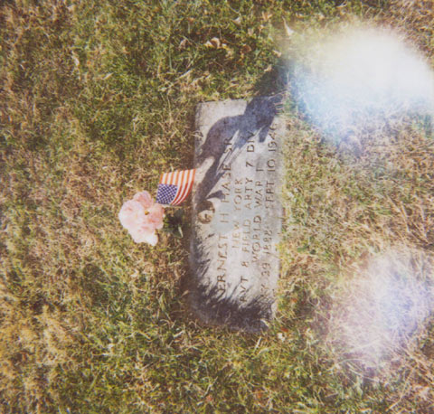 Philip & Susan (zazania7@juno.com) send us: It was November 11, 2001, and my wife, mother-in-law, and I stopped by a local cemetary where some of her family members are buried to decorate their headstones for Veteran's Day. It was a very nice day so we decided to bring the camera and snap a few photos of the grave sites. We were using a Polaroid instamatic, snapping several pictures and setting them aside while they develop. When we checked on them a few minutes later we noticed one photo in particular had these whispy images. The headstone is my wife's grandfater, a World War I vet who may have been enjoying a little family get together on his special holiday. ![]()