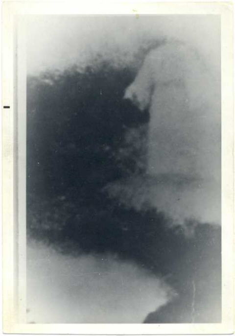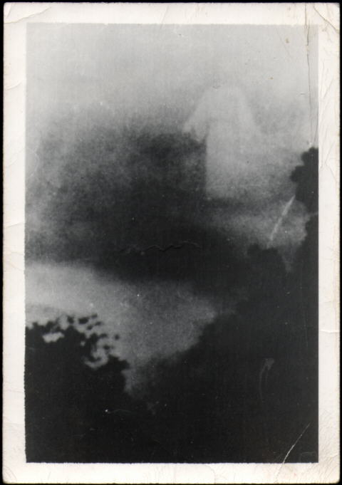 In 1975 at St. Cecelia's elementary school in Dallas TX I recall being shown a black and white Polaroid photo virtually identical to the ones posted on your website, except that the image on the photo I saw was positioned directly in the center of the shot. The story my teacher told us was that the picture was taken after a funeral simply to use up the last bit of film. I was also told that whoever took the photo had simply pointed it skyward without anticipating anything more than a picture of a cloudy sky. This was in 1975 and who knows how old the photo was then. I had heard the story of the photo long before I had ever laid eyes on it.