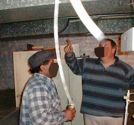 Mercury Seven (mercury_seven@yahoo.com) writes: The guys were in the basement of our home fixing the heat. One of the guys is holding a can of beer. It seems that something comes out of that can of beer and goes right into the head of the taller guy. ![]()