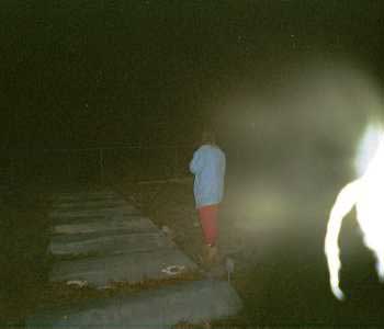 Cathy Du Pont (Tygergirl01@aol.com) wrote: I am a paranormal researcher, down in the Tampa Bay Area, of Florida. This photo was taken in an old slave cemetary, in Tarpon Springs, Florida. I am very sensitive to spiritual activity, and asked my crew to "snap a picture", since I had felt a spirit following me. This picture is the result.
