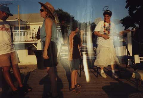 Rich and Carol (eyerock_enterprises@yahoo.com) writes: We live in LaSalle, Ontario. Recently, Sept 7th, we had a costume birthday party and took some pictures, we just got the pictures developed to find this one picture of incredible energy field entities between people within the picture... This picture I asure you has not been altered what-so-ever.