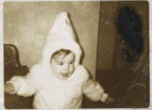 Beckie Pack (geekmom@geekmom.net) writes: This is a picture of me when I was very young (around 1967/68). If you look in the left corner right above me there is an evil looking face. This was probably taken in our house in Novato, CA where my sister used to see floating "things" in the house. One time she awoke in the middle of the night to find something looking at her in the hall and floating away. The house was eventually torn down and highway 101 Southbound installed right over it.