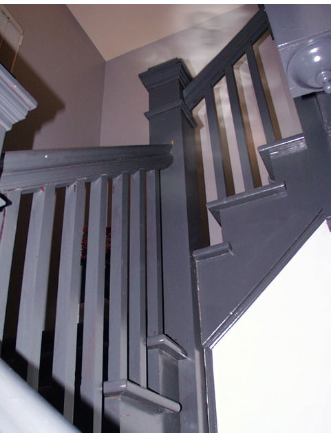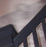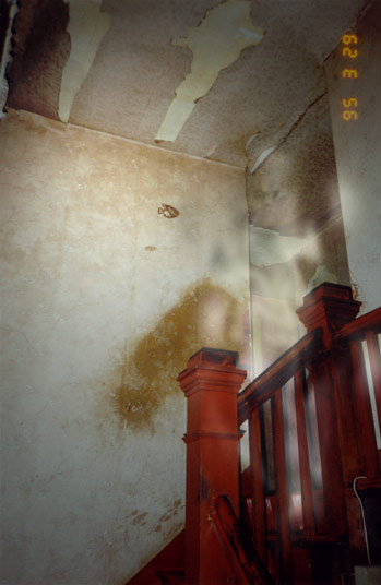 Leonard L. in Hoboken, NJ writes again: Here is the picture we took last week. We are getting the house ready for sale as I said, and now Mom shows up in the same staircase that Dad showed up in (SEE BELOW) when we took the remodeling pictures in 1995. She passed away three weeks ago, this picture was taken four days ago, I had second prints made and had them scan it for me so I could send it to the show. I heard the show last night so I thought I would send you the picture of Mom right away, I wanted to make sure Keith would have time to post it before the web site goes down for good. Also, I know the picture of my father's ghost is a little more than grumpy, he was not a nice man in real life, but you canÕt choose your father so I remember him as best I can in a good light. Truth be told, he was an evil man. I forgot to mention to Keith that my sisters and I feel that the reason they show up here in the staircase is because of the fact that in the early 1960's before I and my sisters were born, my mother had a child from a previous marriage that lived with her and Dad who was killed in an accident falling down the stairs. Mom never liked to talk about it much. Dad was at the top of the stairs when he fell. Maybe Mom knew the truth all those years. He was an evil man. By the way, I personally took both these pictures, and neither ghostly image was visible when I snapped the camera Ð these things only happen on the film, and they only seem to happen here at the staircase, none of the other pictures we have ever taken of the house show anything like this.