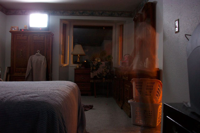 Randy Gyes (rgyes@attbi.com)_ sends us: I just bought a new digital camera today. I was messing around, taking shots of the room in the dark, seeing how the flash effects it, etc. I just put them all on the computer and I have this photo.. Is it a ghost? It scared me! Ê