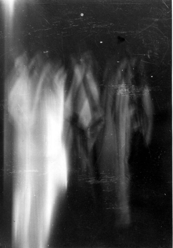 exposure with an old bellows style camera as an experiment. The figures that appeared