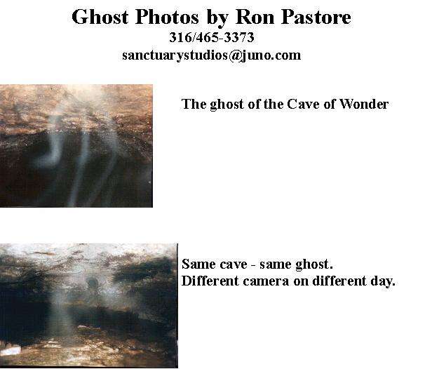 Ron Pastore writes: Here are a couple of ghost photos I took in a cave in Kansas. There are