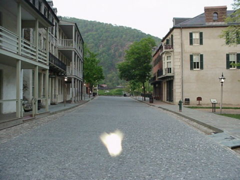 Richard Craze (caribou458@earthlink.net) writes: Attached please find a photo I took at the Harpers Ferry National Historic Park. I call this type of energy "flying cotton balls". On the day this was taken I was virtually alone in the park. I had just taken two other photos further up the street and captured this energy moving between buildings. When I walked down the street, spun around and snapped the shot, there it was not two feet from me. It's as if it followed me down the street. Harpers Ferry is a very active area.