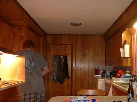 From: Pingle Blobber pingle_blobber@yahoo.com When I saw the "invisibility photos" you posted, I was intrigued, encouraged and finally motivated, by my daughter, to send this photo to you. She took it, with a new digital camera, it has not been altered, retouched, or modified in any way, except for resizing. Just so you know, I am standing IN FRONT of the stove-top. The light over the stove top was on. We've never figured out why things showed up as they did.