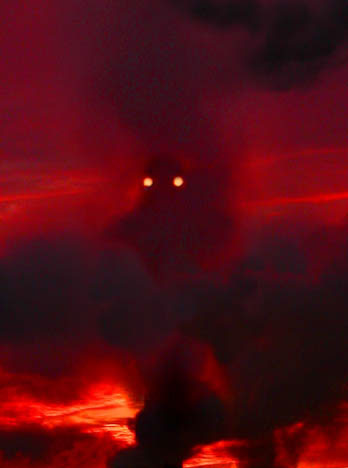 From: Anonomous Artist The original image before enhancement was taken of the smokestack at a factory complex a short distance from work. I used an Olympus C-3030 digital camera to take a series of shots and cut and pasted (with Photoshop) various portions of the smoke to achieve the effect. Caption: "The ominous apparition loomed ahead of me as I was heading home after a long and tiring journey. The creature appeared to be at least 100 feet tall behind the mist, and if I had not taken this picture no one would believe me. Even I would have doubted my own senses. But there it was, hovering silently, as if waiting for someone or something. Was this immense creature another version of The Mothman I had recently heard of? Alas, it was not. The mist cleared . . . it was just a smokestack."