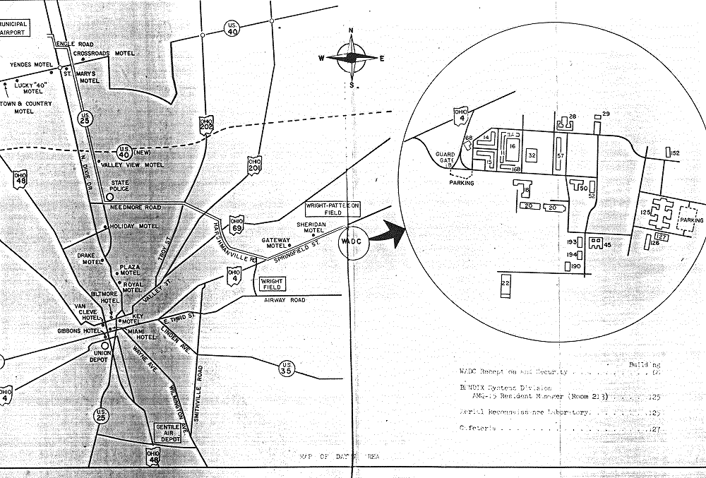 Genuine late 50's map of Wright-Patterson AFB showing the location of the