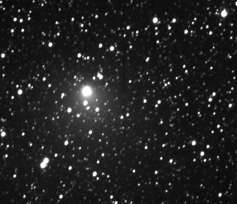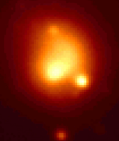 NASA ReleaseFOR RELEASE: October 10, 1995 PHOTO RELEASE NO.: STScI-PRC95-41 HUBBLE SEES MATERIAL EJECTED FROM COMET HALE-BOPPThese NASA Hubble Space Telescope pictures of comet Hale-Bopp show a remarkable "pinwheel" pattern and a blob of free-flying debris near the nucleus. The bright clump of light along the spiral (above the nucleus, which is near the center of the frame) may be a piece of the comet's icy crust that was ejected into space by a combination of ice evaporation and the comet's rotation, and which then disintegrated into a bright cloud of particles. Although the "blob" is about 3.5 times fainter than the brightest portion at the nucleus, the lump appears brighter because it covers a larger area. The debris follows a spiral pattern outward because the solid nucleus is rotating like a lawn sprinkler, completing a single rotation about once per week. Ground-based observations conducted over the past two months have documented at least two separate episodes of jet and pinwheel formation and fading. By coincidence, the first Hubble images of Hale-Bopp, taken on September 26, 1995, immediately followed one of these outbursts and allow researchers to examine it at unprecedented detail. For the first time they see a clear separation between the nucleus and some of the debris being shed. By putting together information from the Hubble images and those taken during the recent outburst using the 82 cm telescope of the Teide Observatory (Tenerife, Canary Islands, Spain), astronomers find that the debris is moving away from the nucleus at a speed (projected on the sky) of about 68 miles per hour (109 kilometers per hour). The Hubble observations will be used to determine if Hale-Bopp is really a giant comet or rather a more moderate-sized object whose current activity is driven by outgassing from a very volatile ice which will "burn out" over the next year. Comet Hale-Bopp was discovered on July 23, 1995 by amateur astronomers Alan Hale and Thomas Bopp. Though this comet is still well outside the orbit of Jupiter (almost 600 million miles, or one billion kilometers from Earth) it looks surprisingly bright, fueling predictions that it could become the brightest comet of the century in early 1997. The full-field picture on the left, taken with the Wide Field Planetary Camera 2 (in WF mode), shows the comet against a stellar backdrop in the constellation Sagittarius. The stars are streaked due to a combination of Hubble's orbital motion and its tracking of the nucleus, which is now falling toward the Sun at 33,800 miles per hour (54,000 km/hr). In the close-up picture on the right, the stars have been subtracted through image processing. Each picture element is nearly 300 miles (480 km) across at the comet's distance. In this false color scale the faintest regions are black, the brightest regions are white, and intermediate intensities are represented by different levels of red. Even more detailed Hubble images will be taken with the Planetary Camera in late October to follow the further evolution of the spiral, look for more outbursts, place limits on the size of the nucleus, and use spectroscopy to study the enigmatic comet's chemical composition. Credit: H.A. Weaver (Applied Research Corp.), P.D. Feldman (The Johns Hopkins University), and NASA Image files in GIF and JPEG format may be accessed on Internet via anonymous ftp from ftp.stsci.edu in /pubinfo. The same images are available via World Wide Web from URL http://www.stsci.edu/pubinfo/Latest.html, or via links in http://www.stsci.edu/pubinfo/Pictures.html |