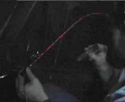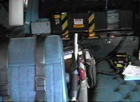 instructor beaming a handheld laser outside the vehicle during operation.