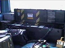 vehicle by the distortion unit. The beam is visible through smoke that is