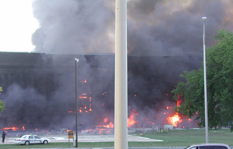 Steve Riskus sends us: I saw the plane crash into the pentagon about 100ft in front of me.