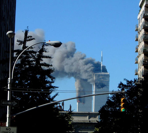 Carmen Taylor of Lavaca, AR took these photos of the second airlliner striking the World Trade Center.