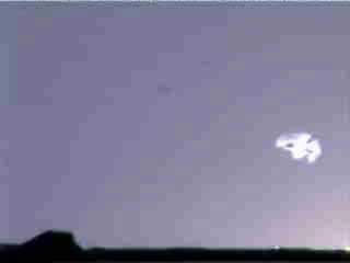 Michael Merchant and Allen Cassidy (ajcassidy@adelphia.net) send us: These photos were taken starting 4-4-02 - 4-6-02, the temp on the first day was 35 degrees and never reached greater then 40 degrees on any of these days, no noticeable insects, black flies and mosquitos are not out yet here in Maine. These were taken with a Sony camcorder set at 20 X magnification, the focus was manual set at infinity, I am still working on the estimated size of these objects as well as their speed. Have taken other photos with trees in the back ground for reference if you are interested I can send you the results at a later date. I have seen these on days when the temp was less then 20 degrees out in February so I am sure they are not insects or birds. In fact soon I will be able to compare these photos with shots of black flies and mosquitos as they will be out in full force within the month. I also have footage of these objects fliting between the branches of trees so I estimate their size (the globular objects) to be between 6 inches and two feet. There are nearly invisable to the naked eye as they travel so quickly and seem to be of a translucent material of some sort. I feel that they are an organic creature and not a craft but evidence is lacking in this respect.