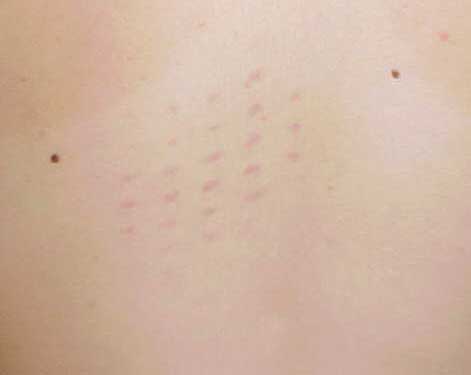 I have had a pattern of red dots appear on my back for a total of three years now.