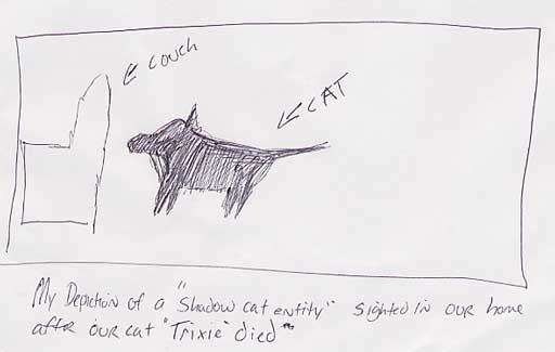the death of our beloved " Trixie" the "shadow cat entity" appeared at approximately