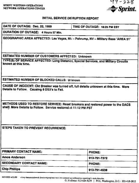 This page contains items that don't quite fit on our other pages. It contains information files, links and sound files. A general mixed-bag of neat stuff. On December 22nd, 1999 Coast to Coast AM had to resort to a replay, due to a long distance phone service outage by Sprint. Here is a public notice of the incident, filed with the FCC, that also states that the outage affected Area 51! UPDATE: It seems that Sprint has decided that the original report should be removed and so the original link now produces a "Letter to the FCC" in addition to the original report.