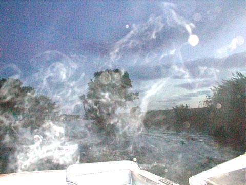 of our small boat at the California Delta this July. ÊNothing was visible at the time,