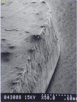 For those who have come into this late, please read the Anonymous Letters regarding this material first. Note: Additional photos and materials were not available for posting to the web site at this time, due to the amount of time it takes to process the photo images and transcribe the data. However, these are a good representative sampling of all the photos and graphs. The ones that are available are provided with a link. Click on the hyper-linked words and thumbnail images to see the full-sized view of the figures and photos. There are some real cool electron microscope images here. Preliminary Analyses of Art's Parts - 6/4/96Three types of specimens were received for analysis. We refer to them here as: 1) the "chips"; 2) the "metal strip"; and 3) the "vent". All of these have been presented earlier in a photograph on Art's Web Page. 1. The chips.