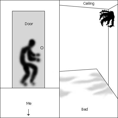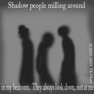 No. 18 - Josh Meeter writes: These are the shadow people I have seen. I refer to them as Red Eyes. I saw 3-4 of them when i was a little kid, one was hovering above my bed looking down at me. I was so terrified, i couldnt even yell. I had always thought it was a bad dream, until i heard other people on Art's show claiming to see them. I saw them again, just last year. I saw the red eyes glowing from my closet in the reflection of my lamp and as i turned around they slowly dissapeared. I was so scared...i spent the rest of the night in the other room and i close my closet door before i go to bed every night.