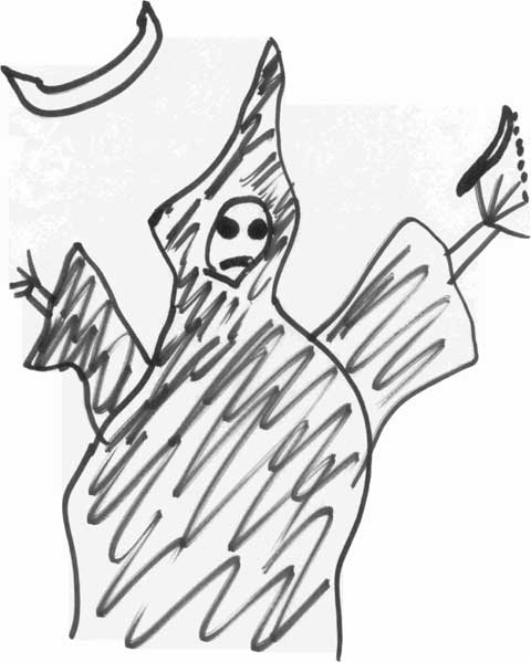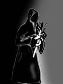 No. 26 - Joyce (moss5@mindspring.com) sends us: Black cloaked beings. Big hood hides the faces, They are following me/us 'down a tunnel of time' seen them most of my life. They have found us now...