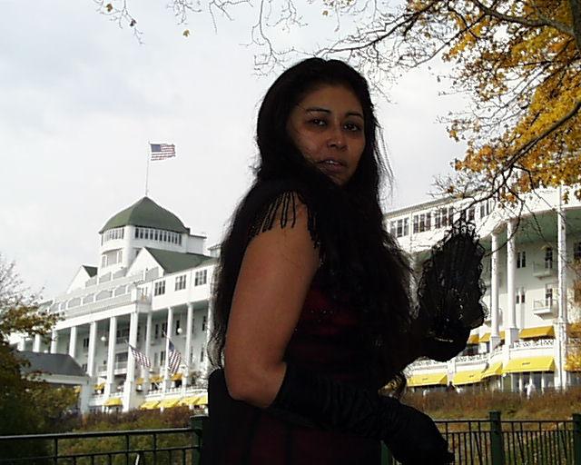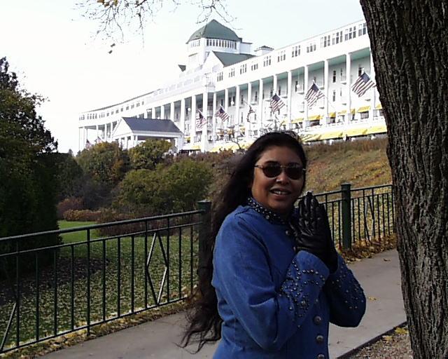 Ramona in front of the Grand Hotel on