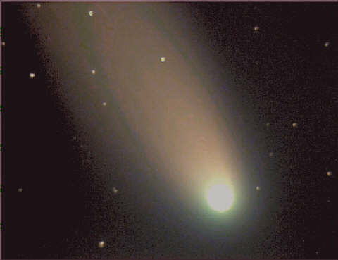 Robert Talaga (rtalaga@earthlink.net) sends us: Here's a photo of Comet Ikeya-Zhang taken from my backyard observatory on the evening of March 26. A 12" telescope and CCD camera were used to acquire the photo. The comet is now faintly visible to the unaided eye in the western sky shortly after sunset.