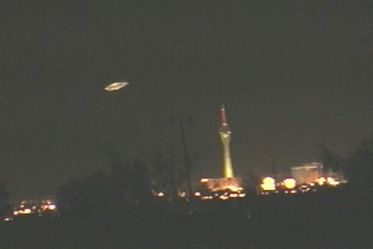 skyline. It has a classic flying saucer look. It flew very slowly and was