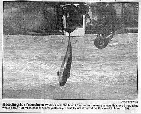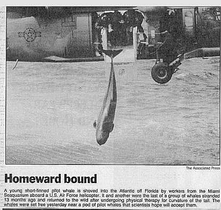 helicopters and dropped in the ocean. Two whales were released during