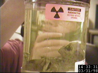 crash. Notice the radiation warning. Subsequent Geiger counter tests